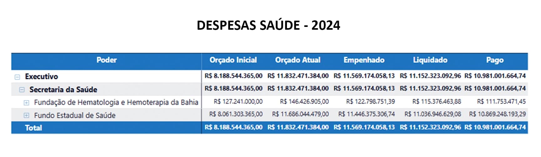 Além disso, a Secretaria da Saúde, com seus R$ 11,57 bilhões empenhados, consolida-se como uma das três maiores áreas prioritárias do orçamento estadual. Parte significativa dos recursos foi destinada a Fundação de Hematologia e Hemoterapia da Bahia e ao Fundo Estadual de Saúde.
