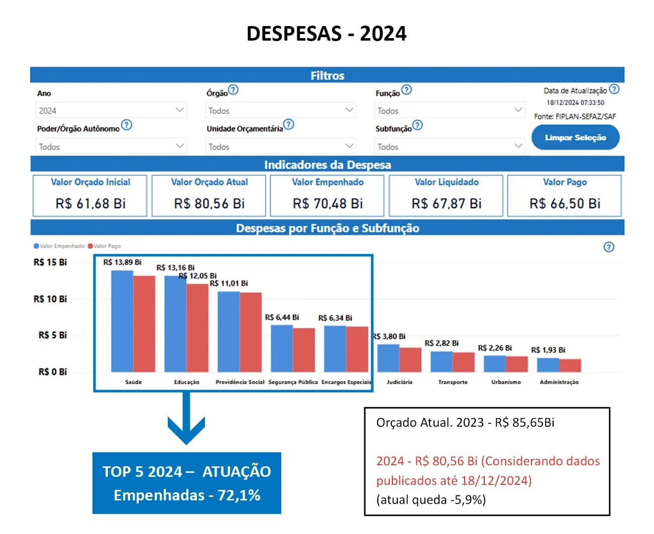 Com 72,1% do orçamento total empenhado até dezembro de 2024, a Bahia demonstra um alto nível de eficiência na aplicação de recursos públicos. Ferramentas como o Portal da Transparência auxiliam gestores e fornecedores a monitorar processos licitatórios, promovendo uma gestão mais estratégica e transparente.